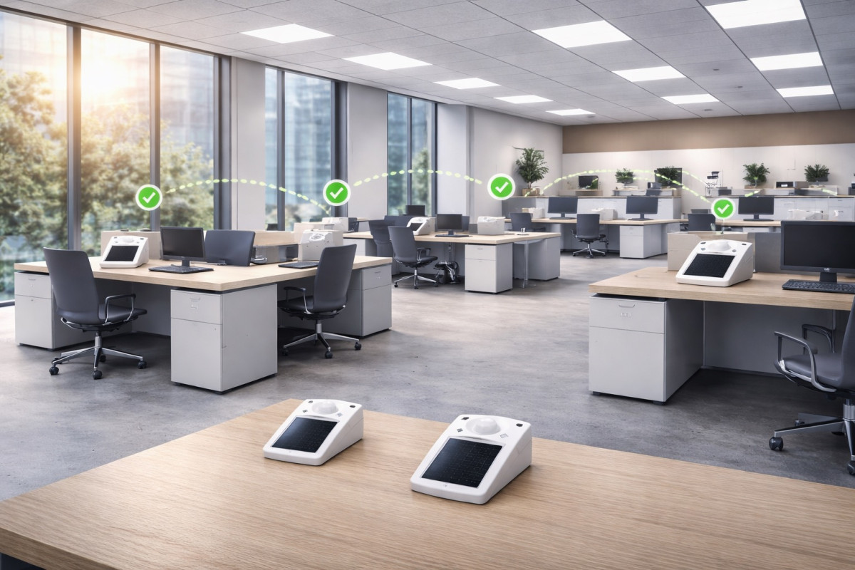 Ve velké kanceláři bývá u oken výrazně víc denního světla než uprostřed místnosti, takže jeden senzor nemusí vystihnout podmínky všude.