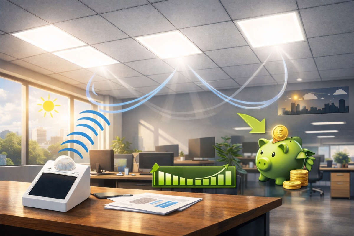 Výsledek: stabilnější světlo v kanceláři a reálný potenciál úspor typicky v řádu 20-60%.