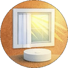 Denní světlo z oken dopadá na senzor, který průběžně měří úroveň osvětlení a bezdrátově předává informaci systému, aby se LED panely plynule přizpůsobily.