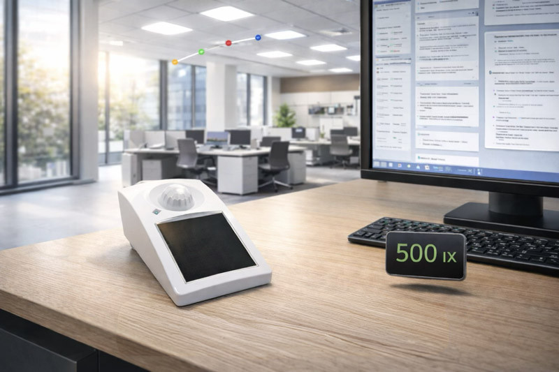 Standardně se tyto senzory instalují na strop, ale v rámci Smart Packu ho umíme přednastavit tak, aby dával smysl i při umístění na pracovním stole – tam, kde vás zajímá reálné světlo pro práci.